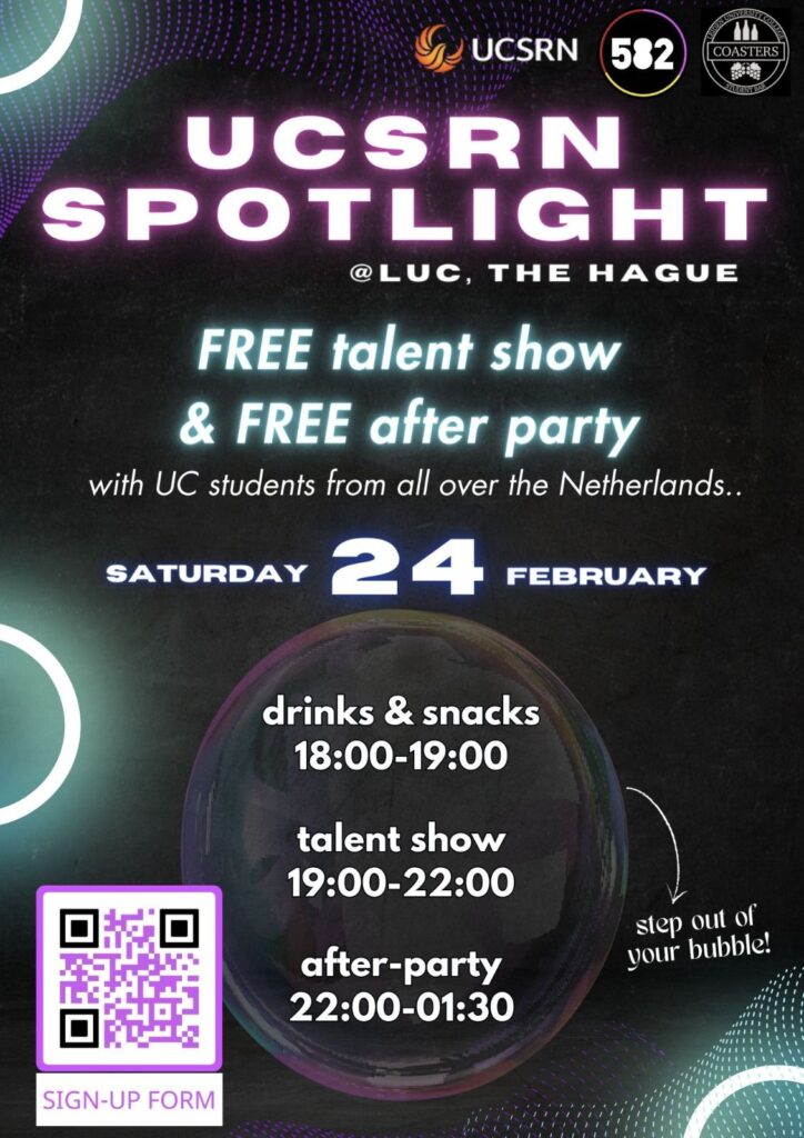 LUC will be hosting this year’s SPOTLIGHT event on Saturday from 18:00 to 1:30. The talent show starts off with food & drinks before developing in a night of spectacle before the after party! 🕺🤩
